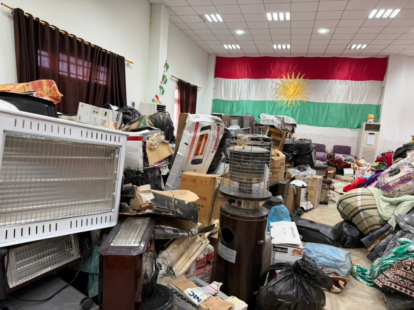 The New Region visited a library in Chamchamal, which was turned into a makeshift warehouse by AVA Media to store the aid that arrived in the city before distributing it among those who needed it, with aid trucks delivering the much-needed utilities, food items, furniture, and electric appliances to Chamchamal's population.